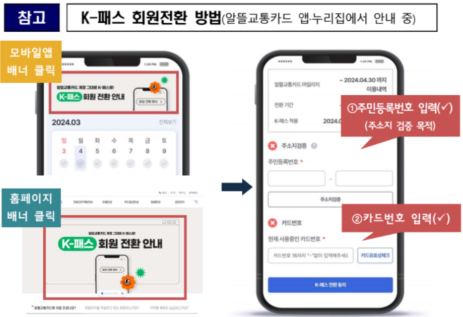 2024년 5월부터 시행 예정인 K-패스 , 출시에 앞서 현재 알뜰교통카드를 사용하고 있는 이용자를 대상으로 K-패스로의 회원 전환 절차를 시행 중이다.